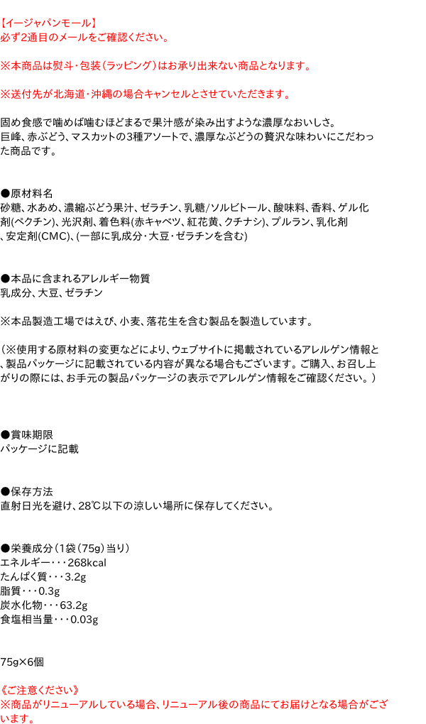 【キャッシュレス5%還元】【送料無料】★まとめ買い★ 春日井 つぶグミ濃厚ぶどう75g ×6個【イージャパンモール】